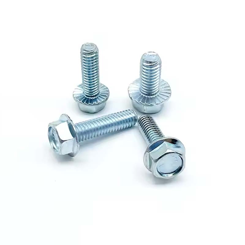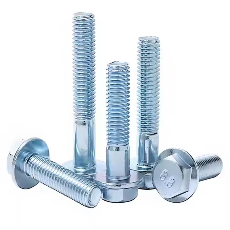 The șurub cu flanșă placat cu zinc din oțel din carboneste format dintr -un cap hexagonal, flanșă și șurub. Capul Hex este utilizat pentru a facilita utilizarea unor instrumente precum chei pentru operațiuni de strângere; Flanșa este situată în partea de jos a capului hexagonal, sub care garnitura este fixată împreună cu capul hexagonal pentru a oferi o zonă de contact mai mare, care ajută la strângerea și prevenirea slăbirii; Șurubul șurubului cu flanșă placat cu zinc din oțel este un cilindru cu fire externe, care este utilizat pentru a coopera cu piulița pentru a realiza strângerea conexiunii.