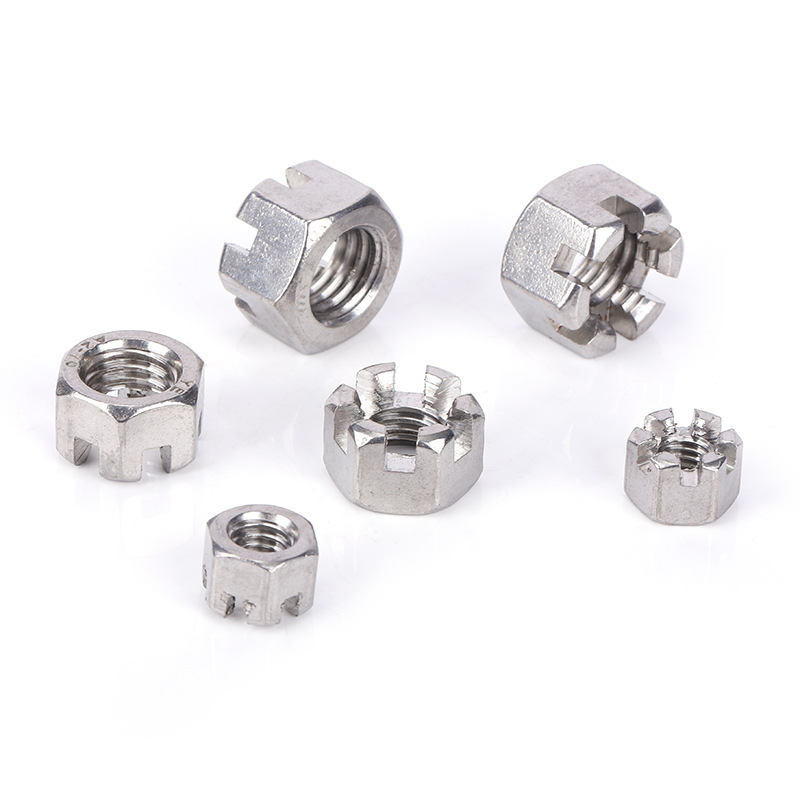 Acestea vin și în dimensiuni fracționale de inch, cum ar fi 1/2"-20 sau 5/8"-18. Dimensiunea hexagonală urmează dimensiunile standard ale cheilor SAE, iar distanța dintre fante este fixată pentru a se potrivi cu diametrele știftului, de obicei 1,5 mm până la 3 mm, în funcție de dimensiunea piuliței.