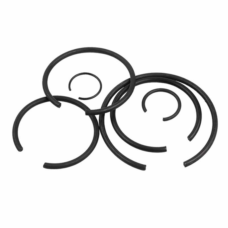 Inelul de fixare rotund pentru alezaj este realizat din oțel carbon sau oțel inoxidabil (cum ar fi SAE 1074/1095 sau AISI 302/316), care nu sunt ușor de ruginit și au o rezistență bună la presiune, pot rezista la o presiune mai mare și nu sunt ușor de spart în timpul procesului de strângere. Sunt tratate termic pentru a fi elastice și pot rămâne strânse chiar și în medii extrem de calde sau reci. Oțelul inoxidabil este mai potrivit în mediile cu mai multă umiditate sau substanțe chimice, cum ar fi componentele marine sau echipamentele medicale, care folosesc adesea umiditate sau agenți de curățare. Sunt suficient de rezistente pentru a rezista la uzura zilnică, dar suficient de flexibile pentru a se fixa în canelura fără a se rupe. În condiții de mediu dure, oțelul inoxidabil este mai potrivit.