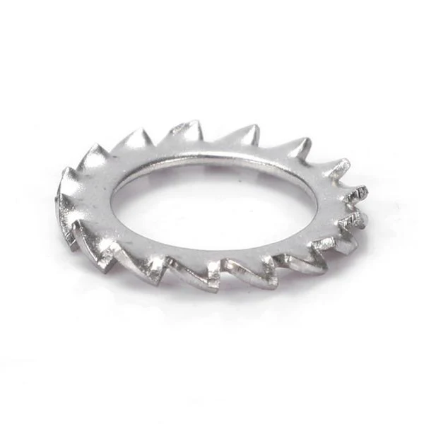 Șaibele de blocare serrate dinții externi sunt un fel de șaibă utilizat în mod obișnuit pentru conectarea pieselor mecanice, iar funcția principală este de a obține o conexiune strânsă între piese prin blocarea. Șaibele de blocare a dinților externi sunt de obicei confecționate din materiale de înaltă rezistență, cum ar fi oțel inoxidabil, aliaj de aluminiu sau aliaj de cupru, cu proprietăți mecanice bune și rezistență la coroziune. Principiul șaibării externe de blocare a dinților este de a folosi geometria sa specială pentru a realiza blocarea.