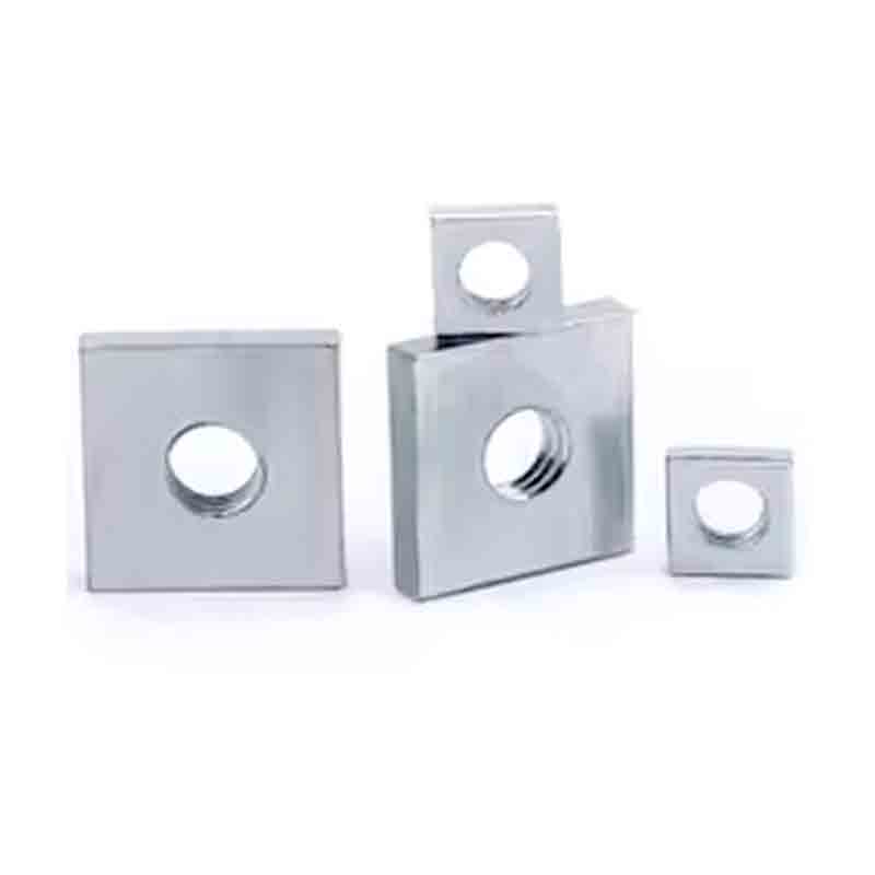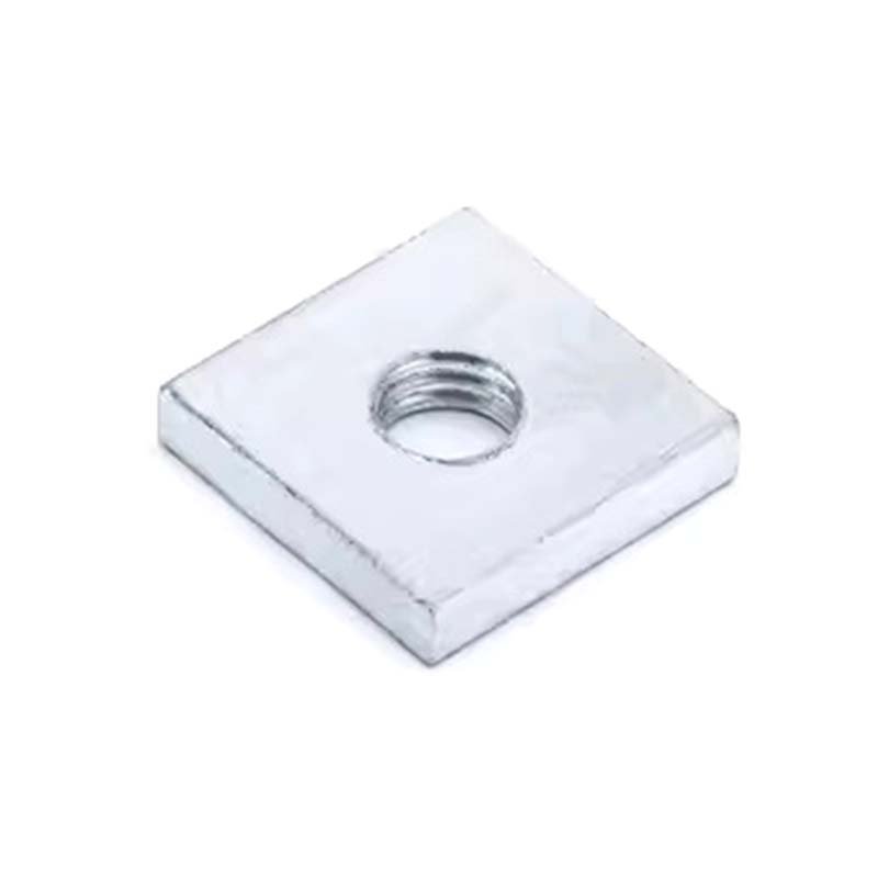 The piuliță subțire pătrată fără șablonCorpul are o gaură filetată. Este mai subțire decât piulițele standard (de obicei grosime de 2-4 mm) și este potrivit pentru goluri înguste. Disponibil în oțel inoxidabil și oțel carbon.