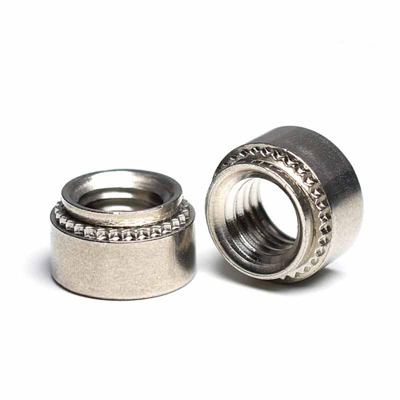 R: Nucile de auto -clinching au un guler de plastic special conceput în interior. Pe măsură ce șurubul este condus, firele se angajează cu ferul, creând o presiune stabilă în jurul șurubului. Acest mecanism de blocare bazat pe frecare împiedică șurubul să se dezlege din cauza vibrațiilor. Astfel de nuci de auto-blocare sunt frecvent utilizate în dispozitive electronice și componente aerospațiale în care sunt necesare elemente de fixare în miniatură.